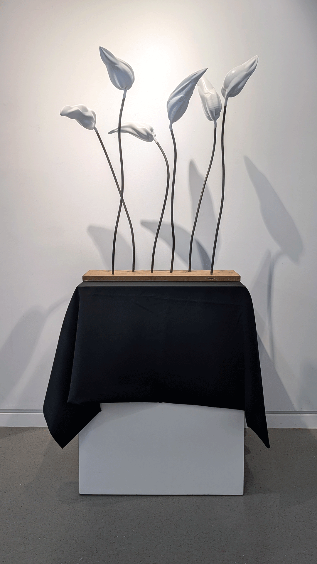 L’inspiration pour cette oeuvre a été la fleur de sumac, une plante porteuse de multiples significations. Au Québec, on la considère souvent comme une mauvaise herbe, alors qu’en Iran, pays d’origine de mon mari, elle est une épice précieuse aux usages culinaires et symboliques. Cette polyvalence m’a inspirée à explorer la relation entre nature, culture et perception.